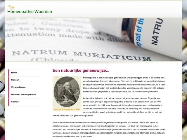 Homeopathie is een natuurgeneeskunde die acute en chronische klachten permanent kan genezen of verzachten, zonder risico op bijwerkingen. Homeopathie is gebaseerd op het gelijksoortigheidprincipe 'Similia Similibus Curentuur'. Dit betekent, als een homeopathisch middel in heel kleine dosis symptomen kan opwekken bij een gezond persoon, dat datzelfde middel ook deze symptomen kan genezen bij een zieke persoon. Homeopathie was al bekend in de oudheid (bij Hippocrates o.a.). Het werd opnieuw ontdekt en in een meer systematische wijze toegepast door Dr. Samuel Hahnemann (1755 - 1843), Duits arts en chemicus. Hahnemann merkte, voordat hij de Klassieke Homeopathie ontdekte, dat de relatief grote doses die hij gebruikte sterke bijwerkingen veroorzaakten. Daarom probeerde hij om de stoffen te verdunnen en te schudden (potentiƫren). Tot zijn verbazing verdwenen de onaangename ziekteverschijnselen, maar nam het genezingsvermogen van de stoffen juist toe. In de tijd van Hahnemann gebruikten artsen homeopathische middelen die ongeveer 30 maal verdund waren, ook wel een potentie van 30 genoemd. Tegenwoordig hebben Klassieke Homeopaten middelen met een potentie van 1000, 10000, 100000 tot hun beschikking. Deze hogere potenties werken langer, dieper en meer genezend, voor lichamelijke maar ook mentale klachten.