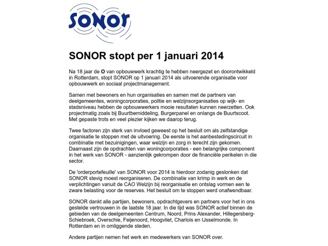 SONOR Stichting Onderneming Opbouwwerk Rotterdam