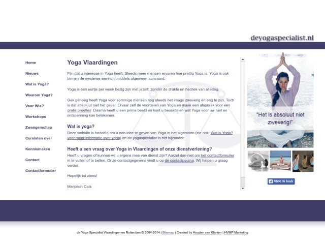 Het woord yoga komt uit het Sanskriet en betekent 'eenheid' of 'samenbrengen'. Yoga ontstond ruim 4.000 jaar geleden in India. Het was een manier om tot een diepere staat van meditatie te komen. Feitelijk is er in 4.000 jaar tijd niet veel veranderd, want ook nu nog is dat de kern van yoga. Veranderingen ten opzichte van vroeger zijn er zeker ook. Anders dan vroeger wordt de eenheid van lichaam en geest nu vooral gezocht (en gevonden) in een combinatie van ademhaling, lichamelijke oefening en concentratie. Asana's Yoga leert ons om lichaam en geest met elkaar in balans te brengen. De oefeningen (Asana's) geven kracht en energie en zorgen voor een algeheel prettig gevoel van ontspanning. Juist in onze jachtige 21e eeuw is yoga een goede manier om rust en ontspanning toe te laten. Geen wonder dat yoga de laatste jaren zo populair is. Balans Wie yoga beoefent, op watvoor niveau dan ook, brengt veranderingen aan in zijn of haar stemmingen. Je zorgt er voor dat je geest meer in balans is en je minder emotionele druk ervaart. Eenvoudig Mensen die onbekend zijn met yoga hebben nog wel eens het idee dat het bij yoga vooral draait om het doen van gecompliceerde en ongemakkelijke lichamelijke oefeningen. Het tegendeel is waar. Natuurlijk zijn er veel asana's waarvoor de nodige kracht en lenigheid nodig is, maar wie begint met yoga merkt al snel dat de meeste klassieke yoga-oefeningen tamelijk eenvoudig zijn uit te voeren. Yoga werkt Yoga is voor iedereen. Voor kinderen, voor jongeren, zwangere vrouwen, volwassenen en ouderen. Iedereen doet het. Over de hele wereld. En weet je waarom? Yoga werkt!